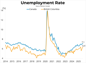 Employment in B.C. rose by 0.3 per cent to 2.944 million, gaining 7,800 jobs in September. Employment in Metro Vancouver increased by 0.8 per cent to 1.691 million. The unemployment rate in B.C. increased by 0.2 points to 6.4 per cent in September. Meanwhile, Vancouver’s unemployment rate fell by 0.2 points to 6.2 per cent in the ninth month of the year.