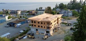 An aerial view of Coastline Station, which is being built in downtown Lantzville